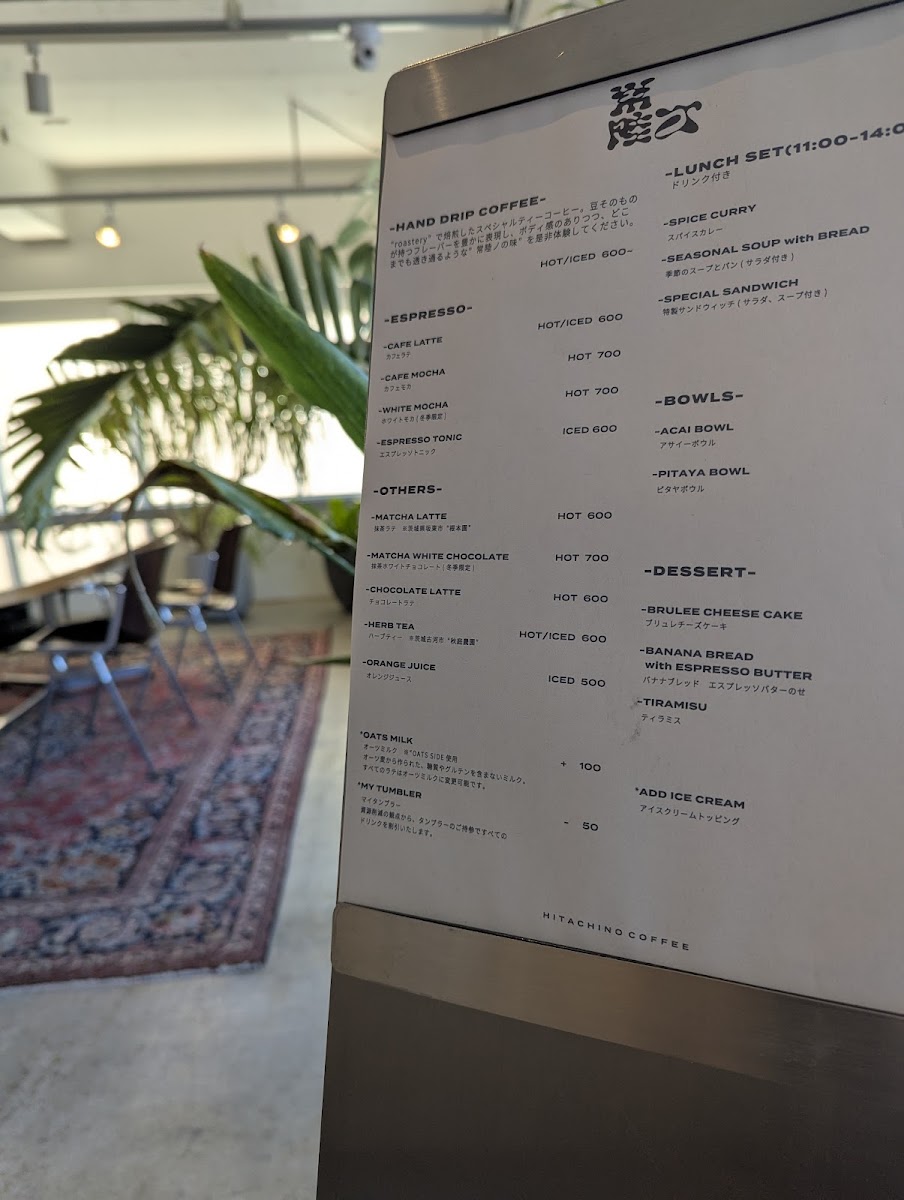 HITACHINO COFFEE SIDE B店 Menu